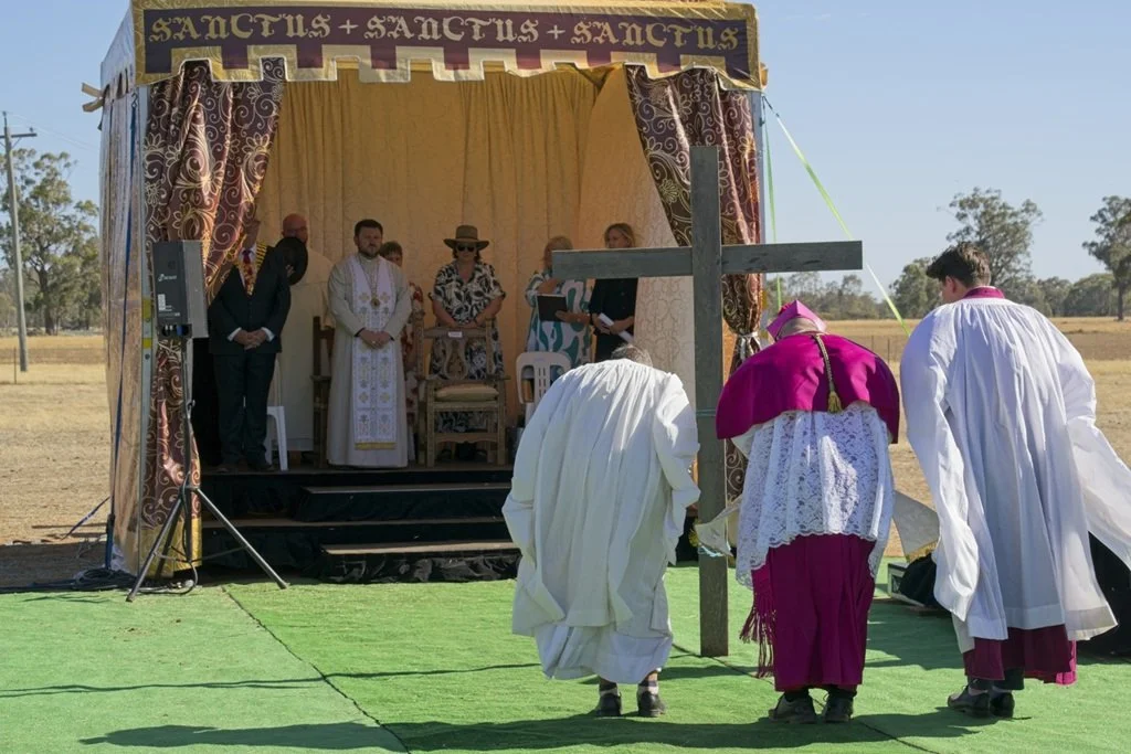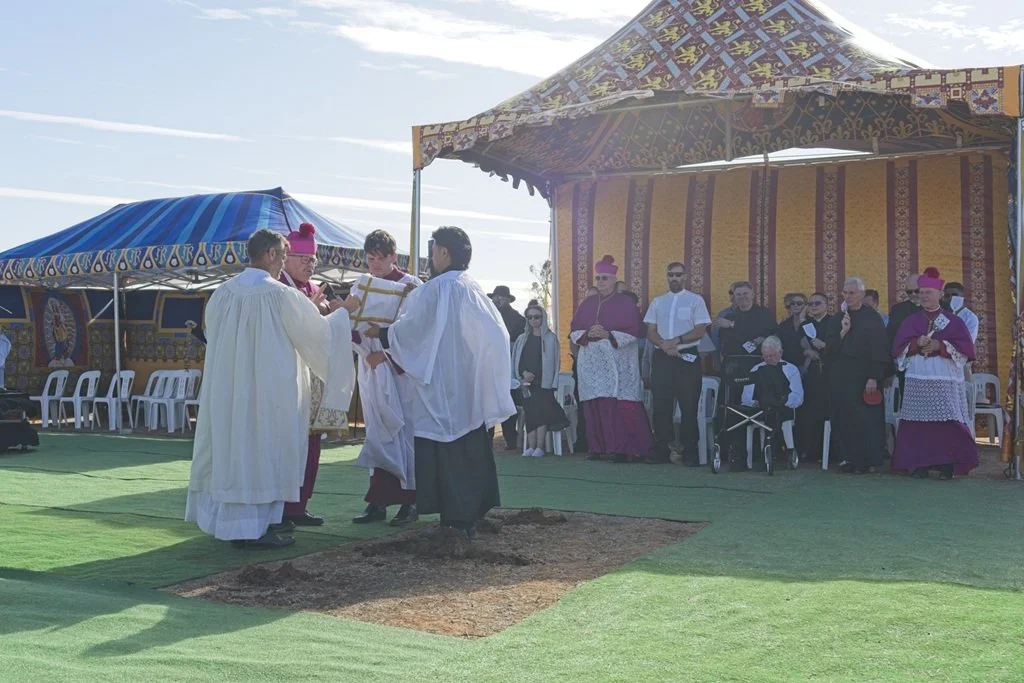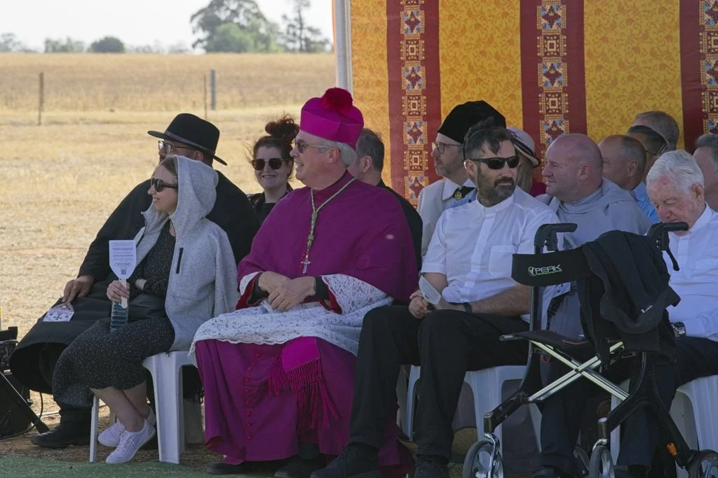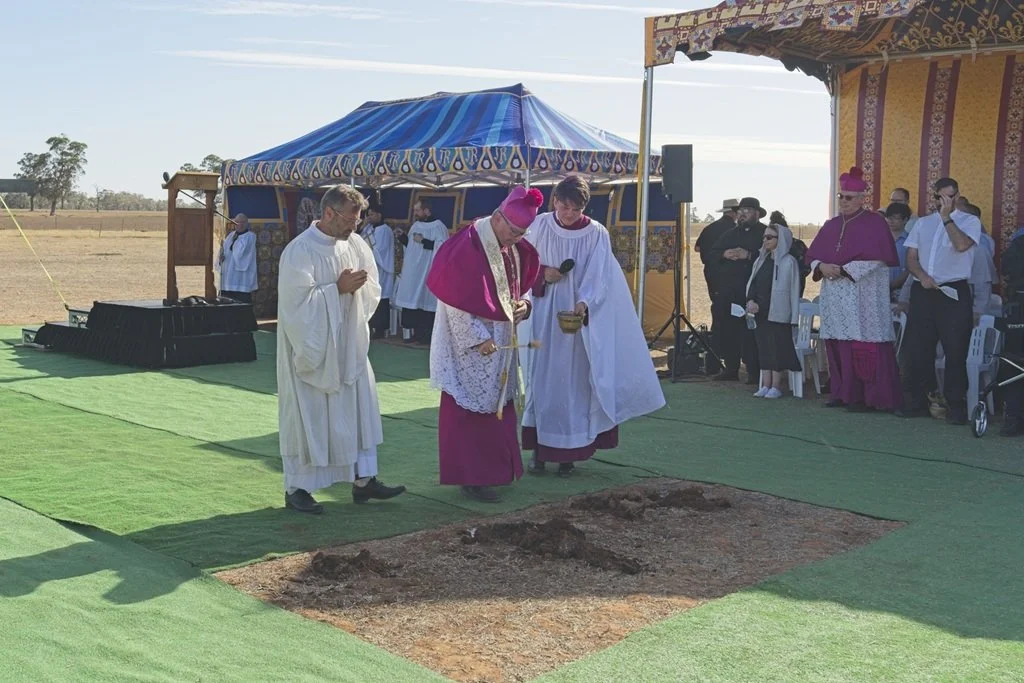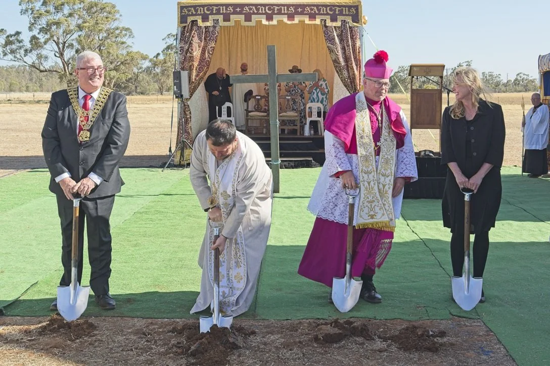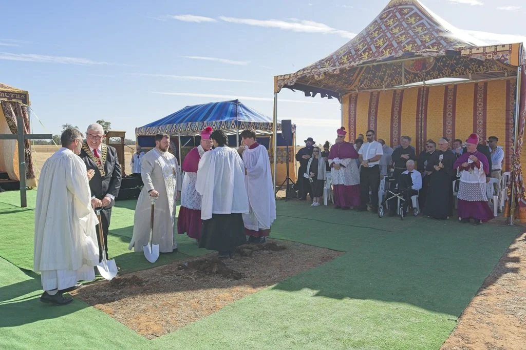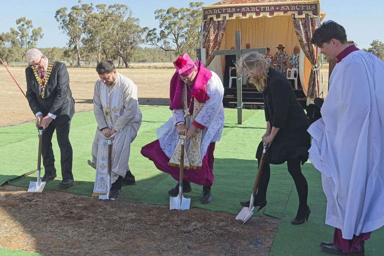 The Sisters would like to extend their gratitude to all who attended their Groundbreaking Ceremony on Saturday 10 January in order to mark commencement of construction for the first stage of their monastery residence. Ground was broken by Mykola Cardinal Bychok, CSsR, Bishop Columba Macbeth-Green, OSPPE, Mrs Colleen Jreissati (representing Mr Elias Jreissati AM KJGC—the principal patron of the Chapel), and Mayor John Harvie, of the Murray River Council.