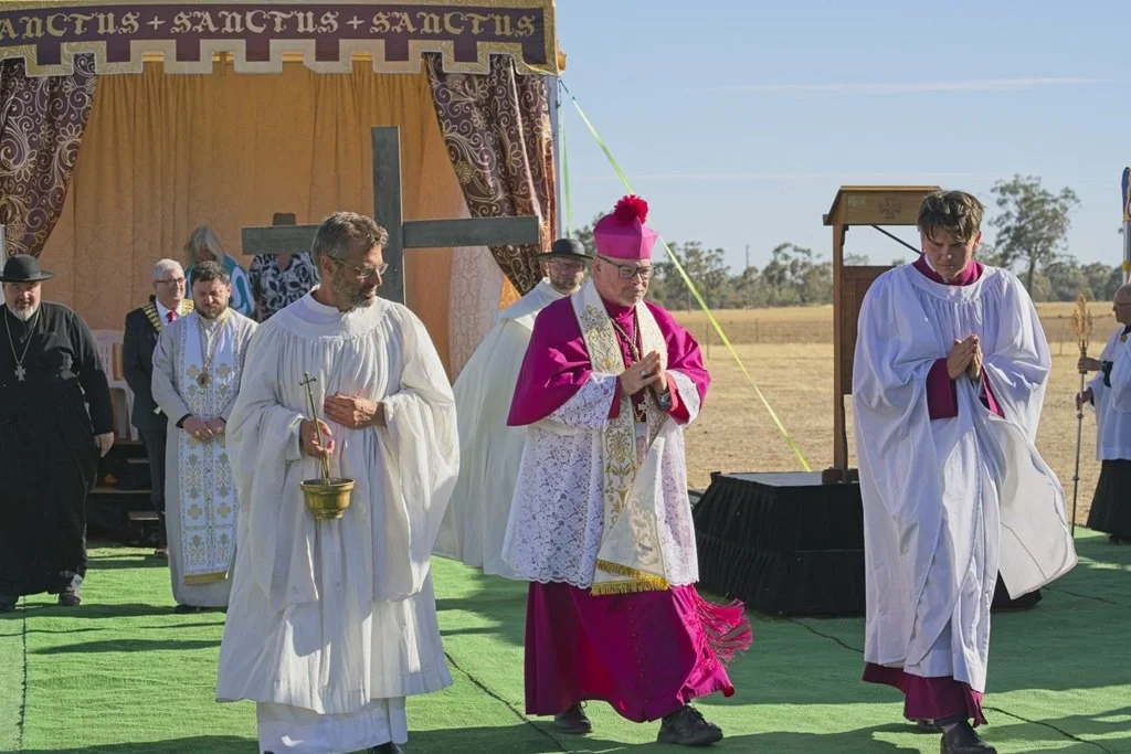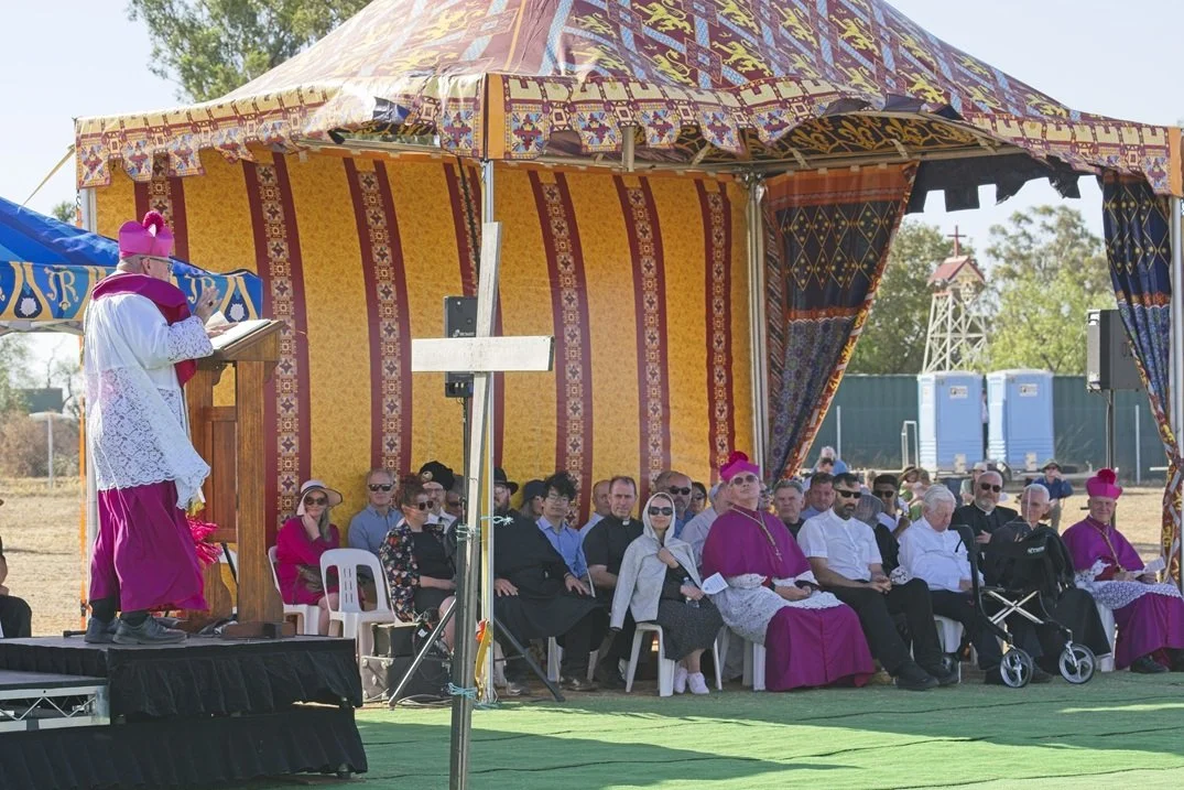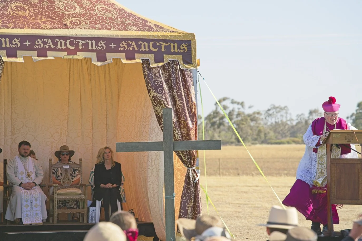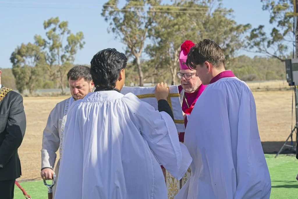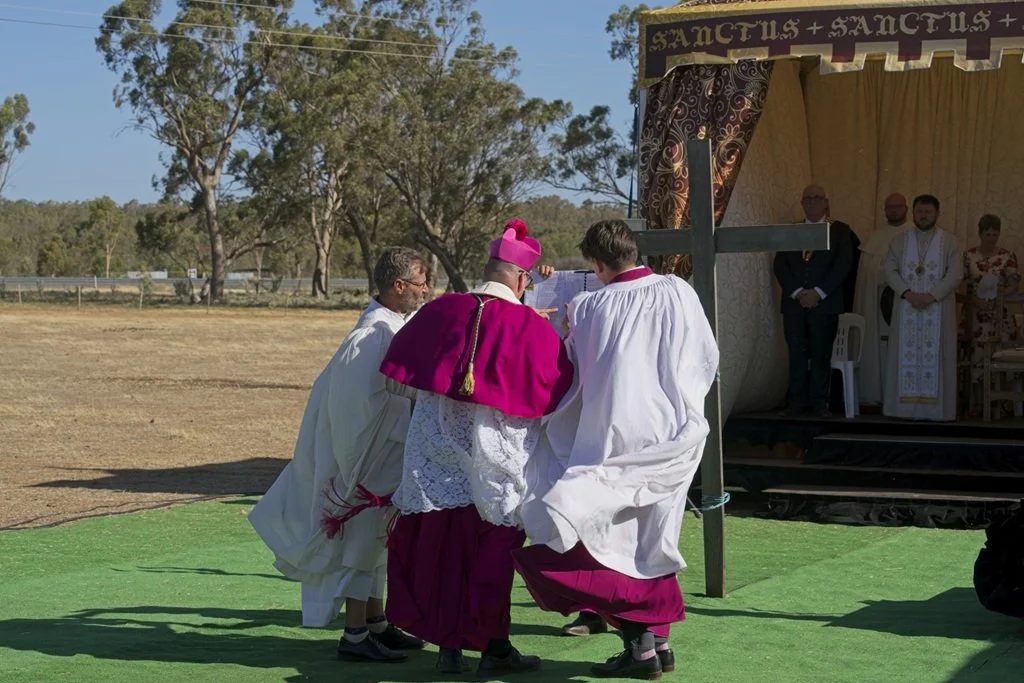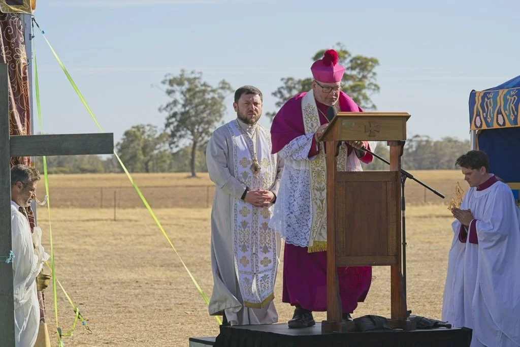 The Sisters would like to extend their gratitude to all who attended their Groundbreaking Ceremony on Saturday 10 January in order to mark commencement of construction for the first stage of their monastery residence. Ground was broken by Mykola Cardinal Bychok, CSsR, Bishop Columba Macbeth-Green, OSPPE, Mrs Colleen Jreissati (representing Mr Elias Jreissati AM KJGC—the principal patron of the Chapel), and Mayor John Harvie, of the Murray River Council.