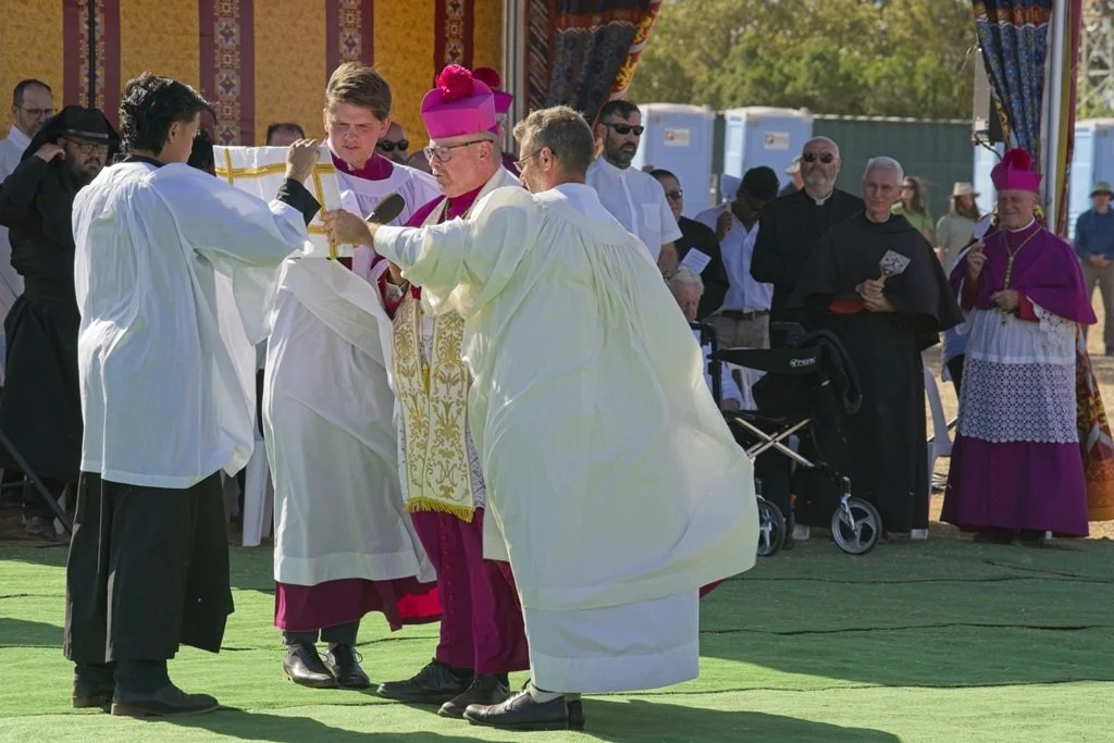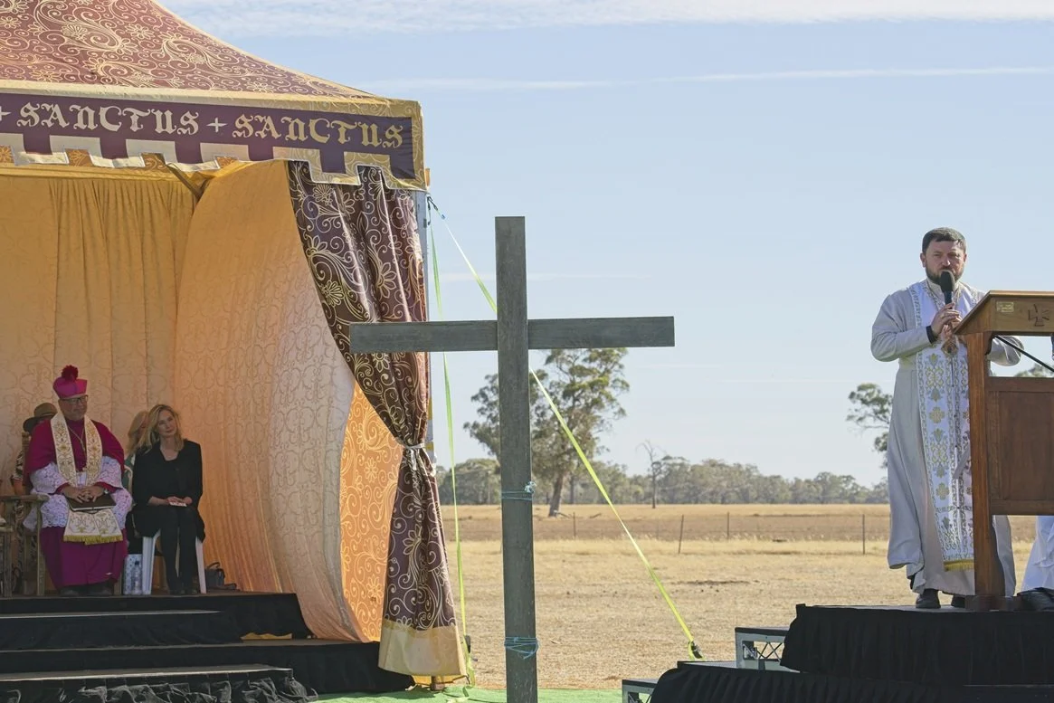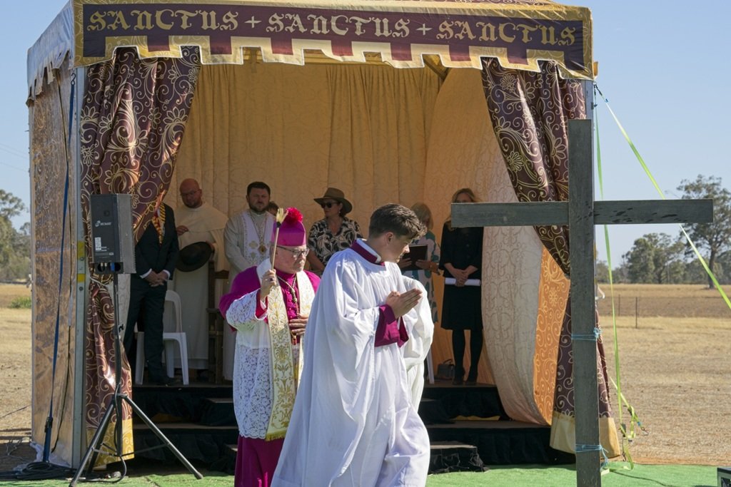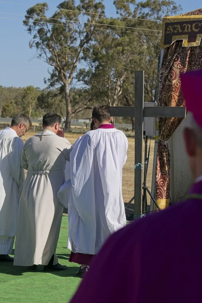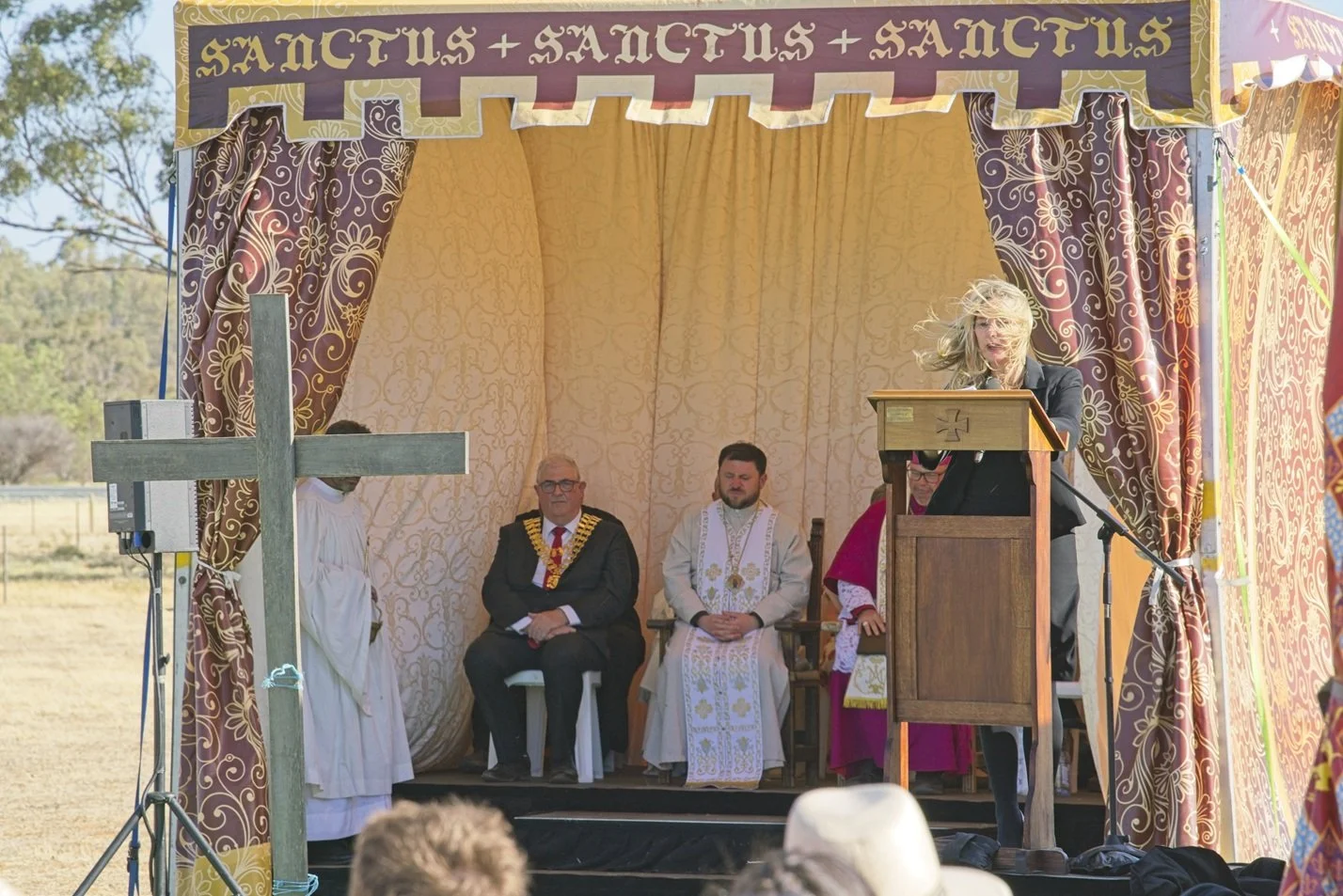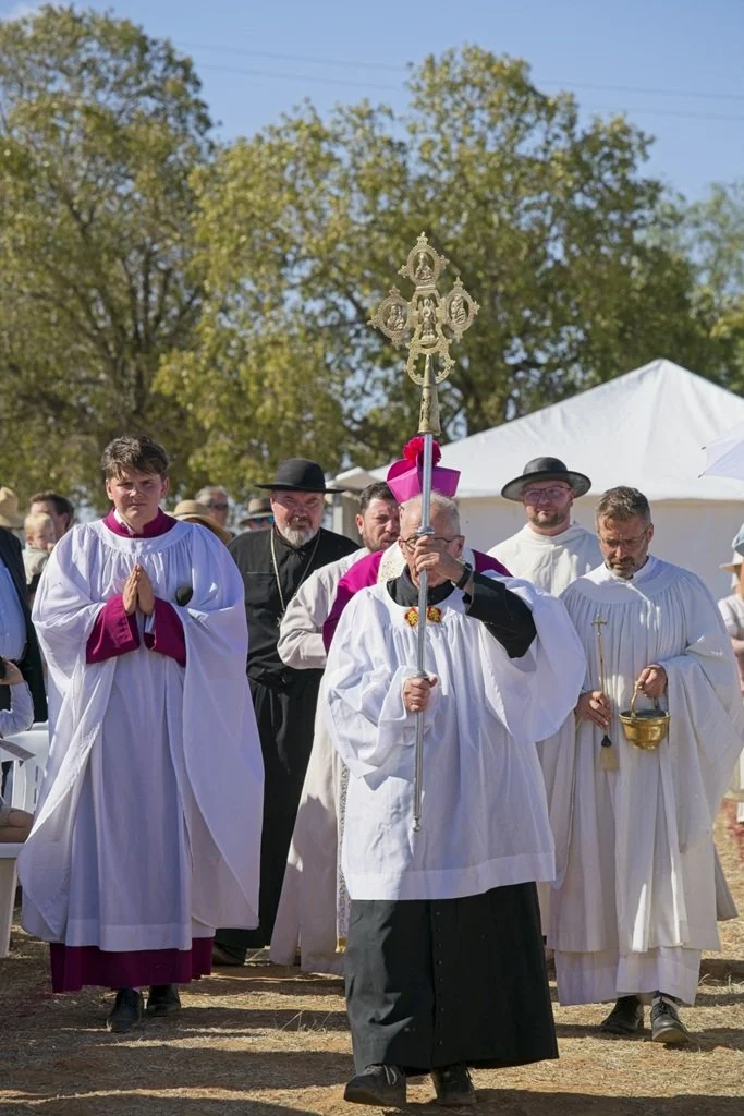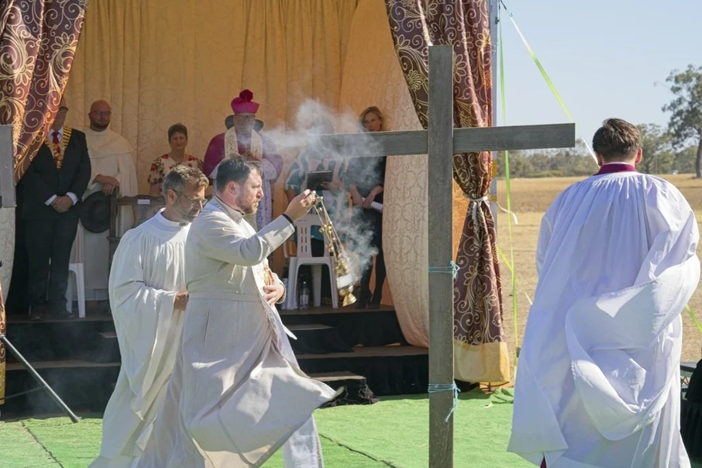 The Sisters would like to extend their gratitude to all who attended their Groundbreaking Ceremony on Saturday 10 January in order to mark commencement of construction for the first stage of their monastery residence. Ground was broken by Mykola Cardinal Bychok, CSsR, Bishop Columba Macbeth-Green, OSPPE, Mrs Colleen Jreissati (representing Mr Elias Jreissati AM KJGC—the principal patron of the Chapel), and Mayor John Harvie, of the Murray River Council.