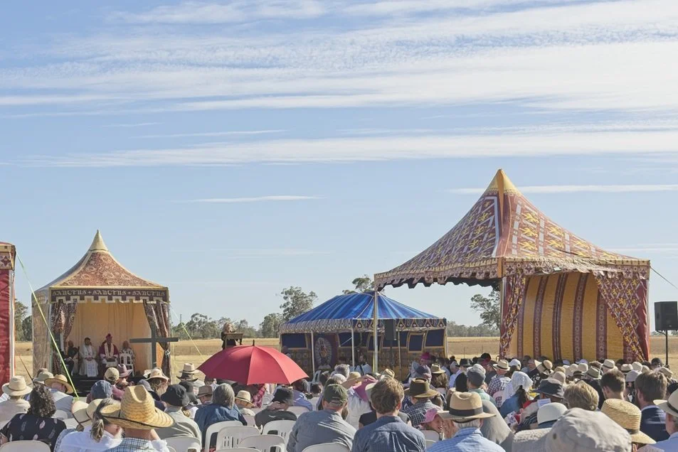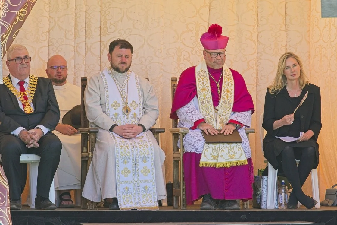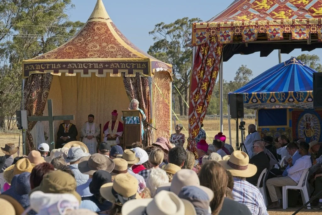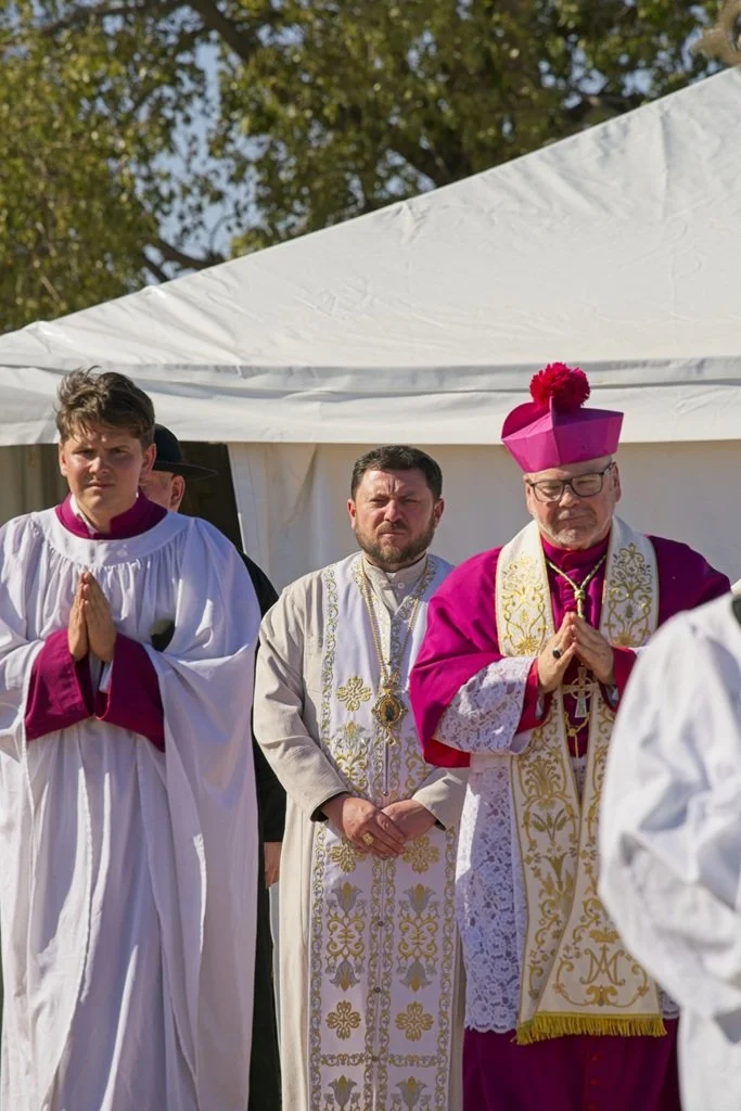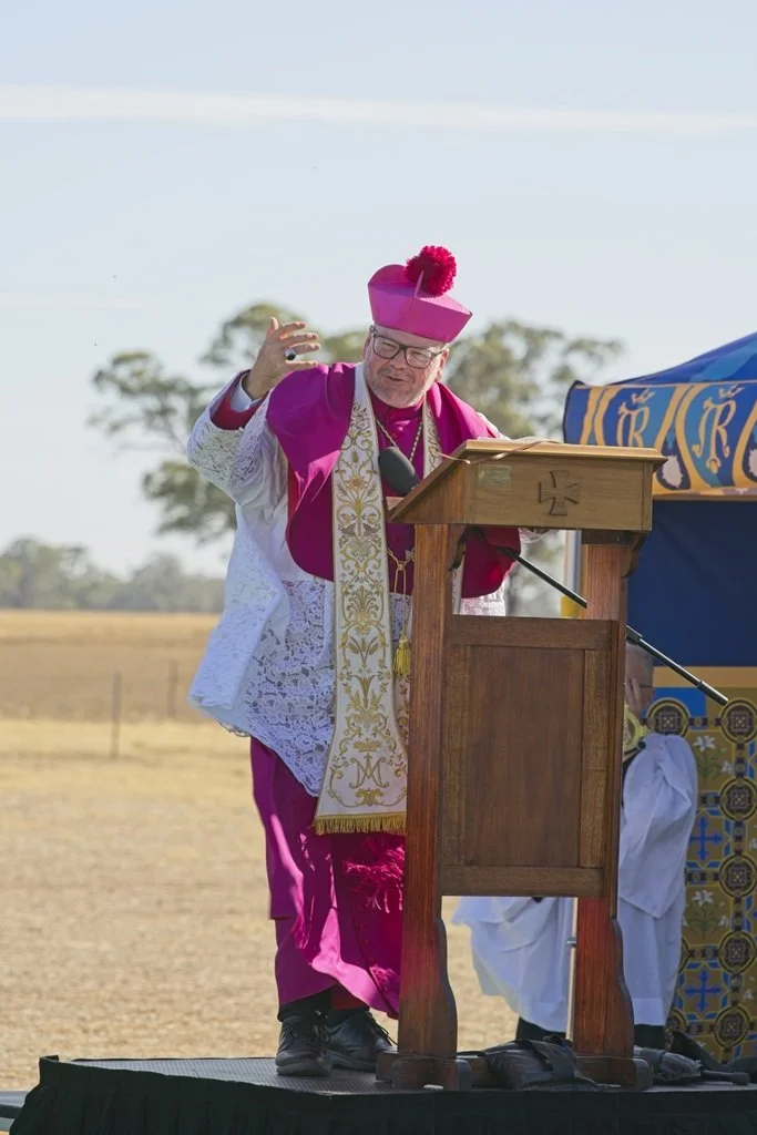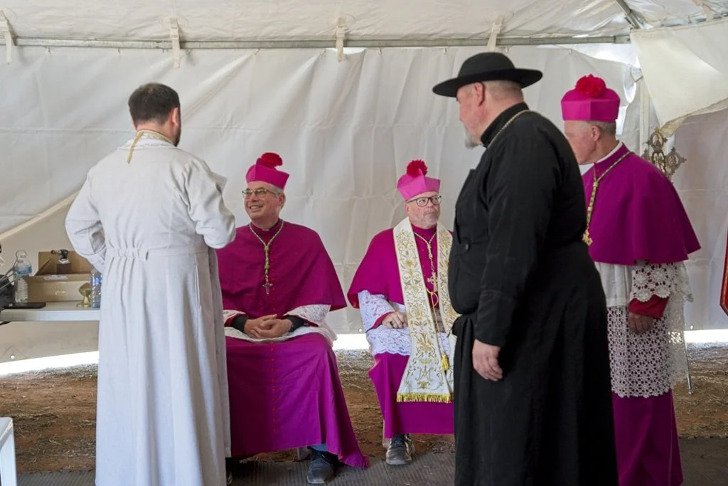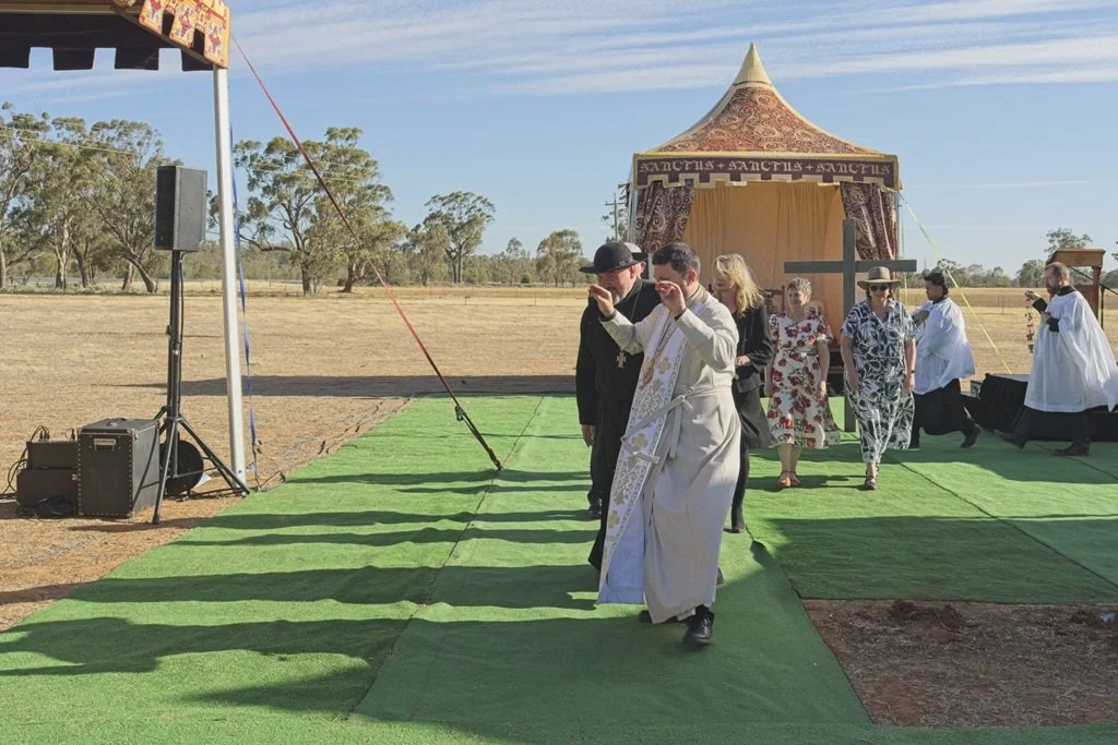 The Sisters would like to extend their gratitude to all who attended their Groundbreaking Ceremony on Saturday 10 January in order to mark commencement of construction for the first stage of their monastery residence. Ground was broken by Mykola Cardinal Bychok, CSsR, Bishop Columba Macbeth-Green, OSPPE, Mrs Colleen Jreissati (representing Mr Elias Jreissati AM KJGC—the principal patron of the Chapel), and Mayor John Harvie, of the Murray River Council.